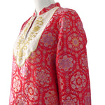 CAREN DRESS IN RED BROCADE