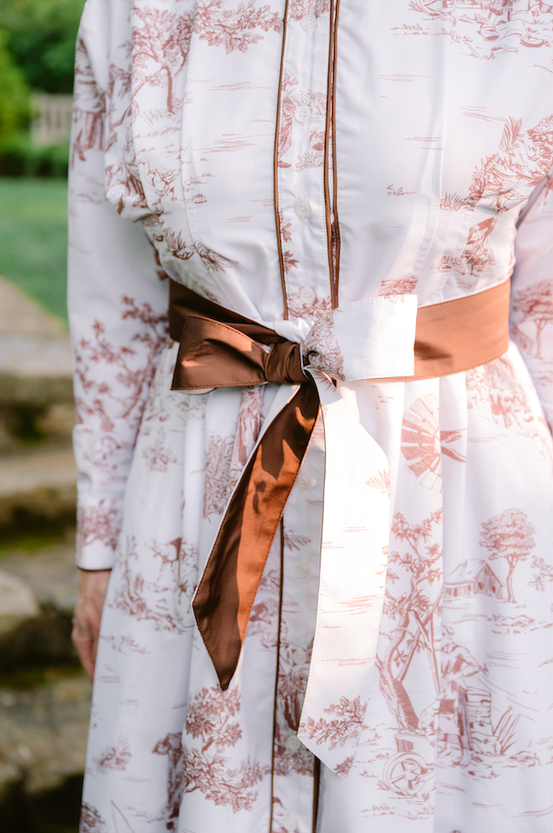 The Jill Dress in Brown Dutch Toile blends refined charm with modern-day ease. Crafted from a lightweight polyester fabric, it features a rich Dutch toile print in warm brown tones that feel both classic and fresh. The collared neckline, full-length button front, and long sleeves offer timeless shirt dress structure, while the removable sash belt lets you tailor the fit to your liking. Finished with functional side pockets and a breezy midi length, the Jill Dress is perfect for daytime occasions where style and comfort go hand in hand. From spring garden strolls to weekend brunches, it’s your invitation to wear tradition with a twist.