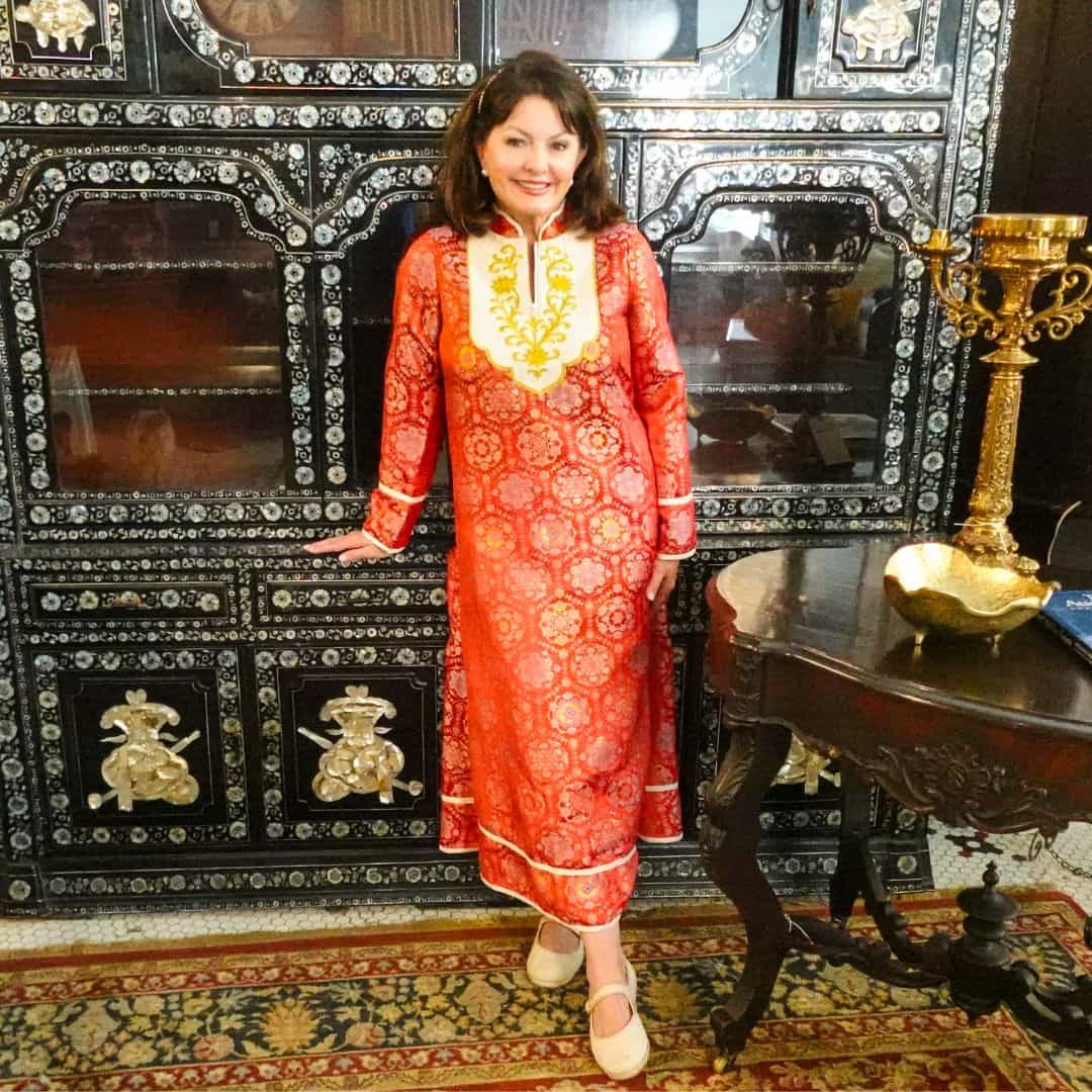 The Caren Dress in Red Brocade will only be available to ship in November. It is available to pre-order now and secure this timeless piece of elegance inspired by love and legacy!
