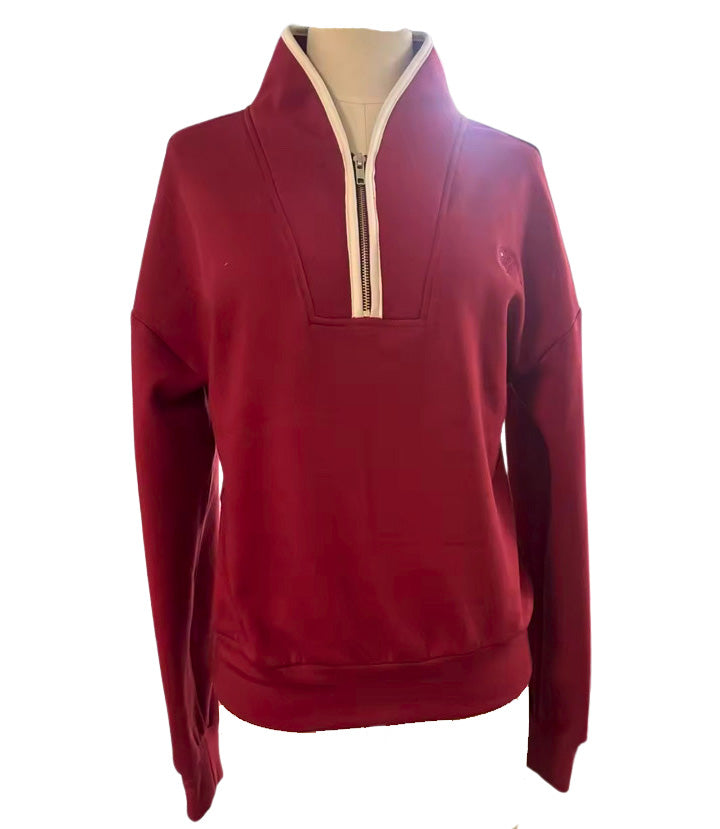 Stay cozy and stylish with this versatile half-zip funnel neck pullover in a rich red hue. Designed with a relaxed fit and modern silhouette, this piece combines comfort with effortless style. The high collar and contrast zipper detail add a sporty-chic touch, while the soft fabric ensures all-day wearability.