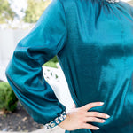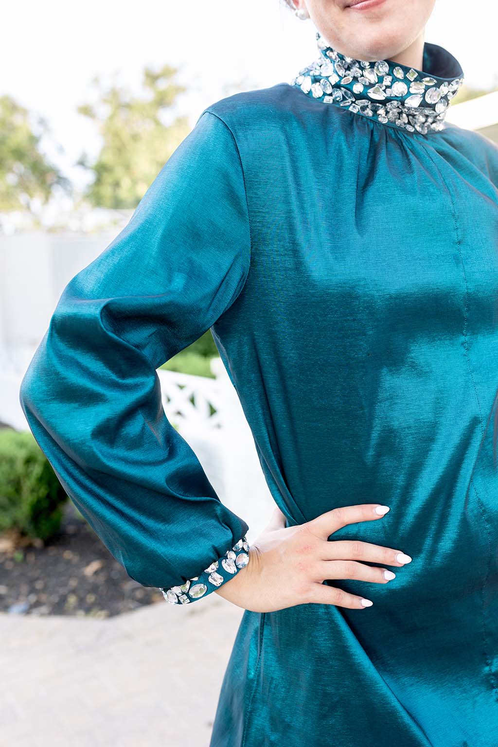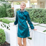 Meet The Lydia Dress—a timeless, polished silhouette crafted in a gorgeous taffeta-blend fabric that offers structure, sheen, and just the right amount of drama. This blue jewel-toned beauty catches the light effortlessly, giving you an elevated look that still feels comfortable and easy to wear.